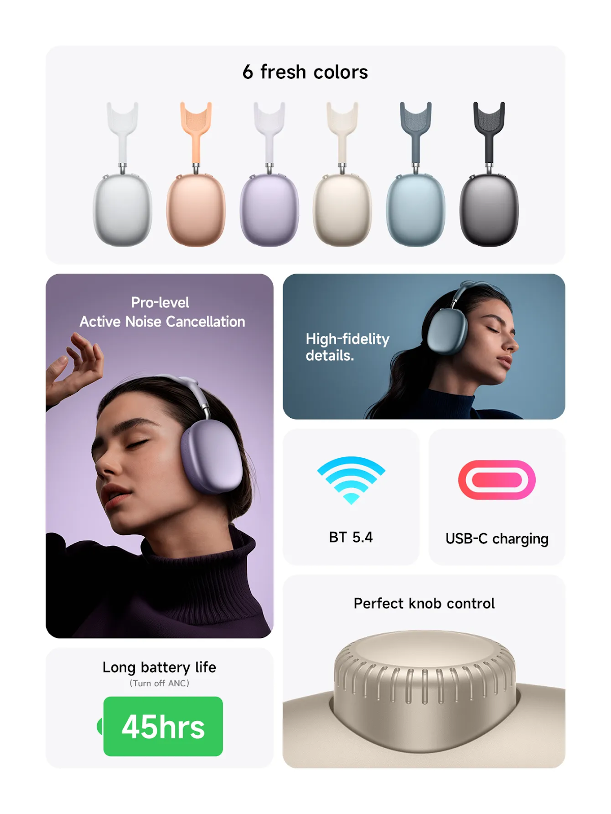 Завдяки технології активного шумопоглинання (ANC) навушники ефективно знижують зовнішні шуми, дозволяючи вам повністю зануритися у музику або інші медіа без відволікань. Це робить їх ідеальним вибором для використання в шумних умовах, таких як транспорт або багатолюдні місця.