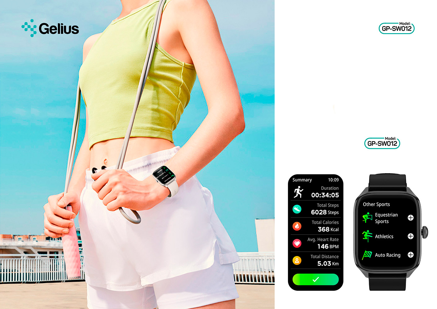 Вдосконалюйте тіло і тренуйтеся із задоволенням. Поєднуючи понад 100 спортивних режимів, GELIUS Pro відстежуватиме ефективність занять. Просто погляньте на зап'ястя, щоб контролювати пройдені кроки, спалені калорії, частоту пульсу та інші параметри вашої активності.